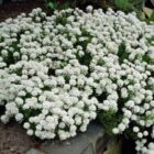 Ubiorek ‘Nevina’ to wyjątkowo dekoracyjna, wiosenna bylina o śnieżnobiałych kwiatach, które tworzą gęste, eleganckie baldachimy nad ciemnozielonymi liśćmi. Drobne kwiaty zebrane w zwarte kwiatostany przypominają delikatne chmurki, nadając roślinie lekkości i świeżości. Czysta, biała barwa kwiatów doskonale rozjaśnia rabaty i kompozycje ogrodowe, wprowadzając do ogrodu klasyczny, elegancki akcent.